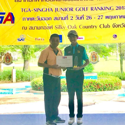 ðĪĐ āļāļĩāļāđāļē āļĒāļāļāđāļĒāļĩāđāļĒāļĄāļĄāļēāļāļāļģ 7 āļāļąāļāđāļāļāļĢāđāļāļēāļĢāđ āđāļāļ§āļąāļāļŠāļļāļāļāđāļēāļĒ āļāļ§āđāļēāđāļāļĄāļāđāļāļāļĨāđāļāđāļĒāļēāļ§āļāļāđāļŦāđāļāļāļĢāļ°āđāļāļĻāđāļāļĒ āļ āļēāļāļāļ°āļ§āļąāļāļāļāļ āļŠāļāļēāļĄāļŠāļāļ āļĢāļ°āļŦāļ§āđāļēāļāļ§āļąāļāļāļĩāđ 26-27 āļāļĪāļĐāļ āļēāļāļĄ āļāļĩāđāļāđāļāļāđāļģāđāļāļīāļ āļāļģāļŠāļāļāļĢāđ 73-64 = 137 (-5) āļāļģāļāļĩāđāļŠāļāļāļāļķāļ 22 āļŠāđāļāļĢāļ āļāļĩāļāđāļē āļāļ§āđāļē 2 āđāļāļĄāļāđ 1. āđāļāļĄāļāđ āļĢāļļāđāļ B-Boy 13-14 āļāļĩ 2. āđāļāļĄāļāđāļāļ°āđāļāļāļāđāļģāļŠāļļāļāļāļāļāļĢāļēāļĒāļāļēāļĢ Overall Lowgross â-////â- Fifa Pongsapak Laopakdee shoots bogie-free 64 (seven-under-par) at Silky Oak Golf, Rayong on Sunday to win the 2018 TGA-Eastern Junior Golf Tournament, Thailand Golf Association (Eastern). May 26-27, Par 71, Blue tee, 1. Champion, B-Boy fight, Boy 13-14 yrs. 2. Overall Lowgross Champion. Total score: 73-64 = 137 (-5)